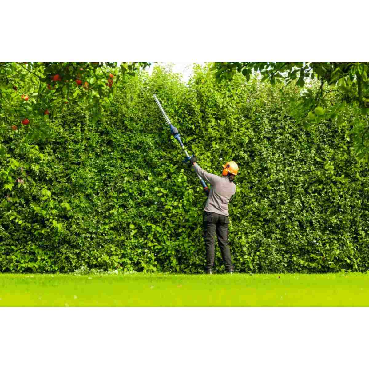 - speciální aku plotostřih s prodlužovací tyčí do výšky až 2 metrů pro prořezávání silnějších větví ve výškách