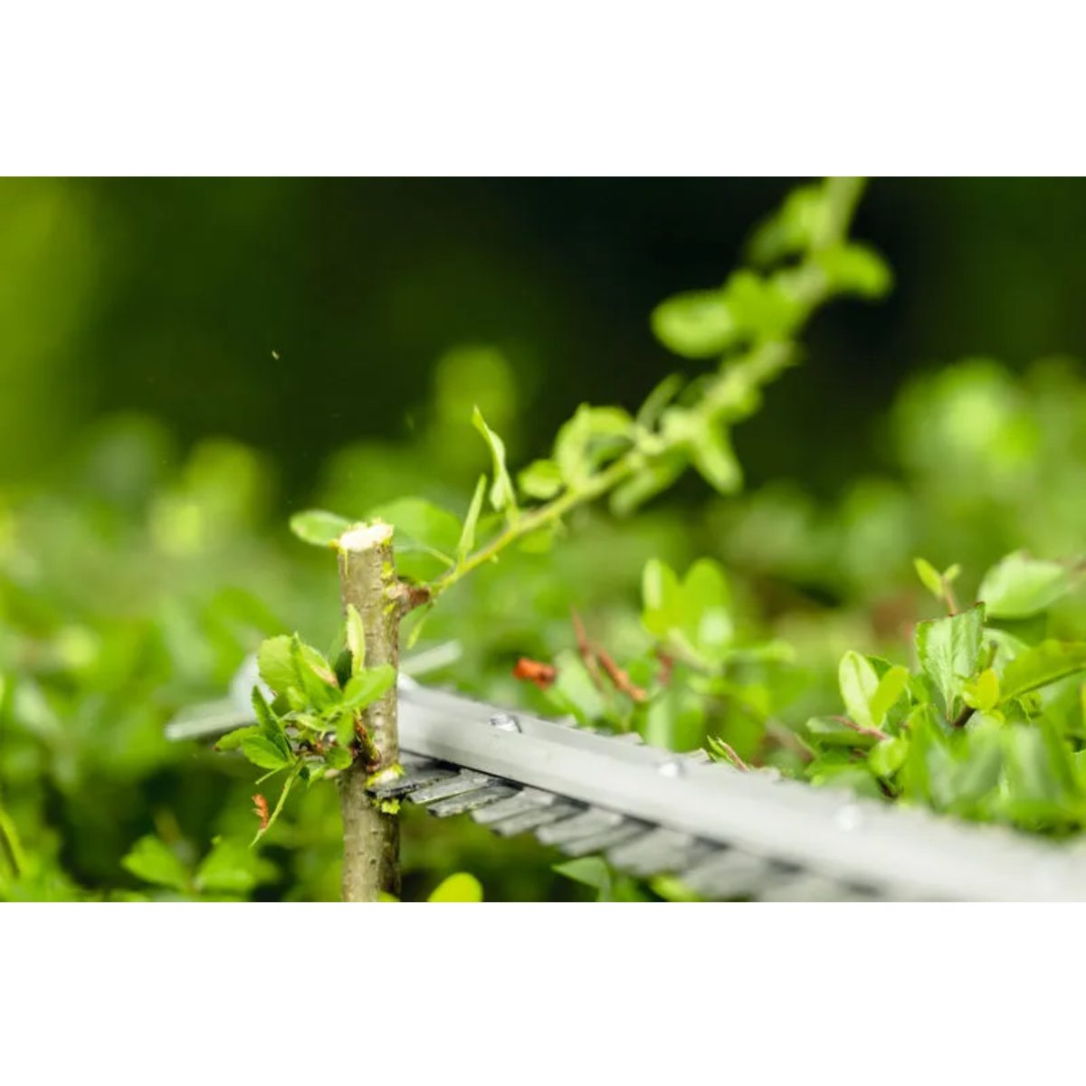 - plynulá regulace otáček a bezuhlíkový motor zajišťuje silný výkon pro efektivní zastřihování vysokých živých plotů s dlouhou životností