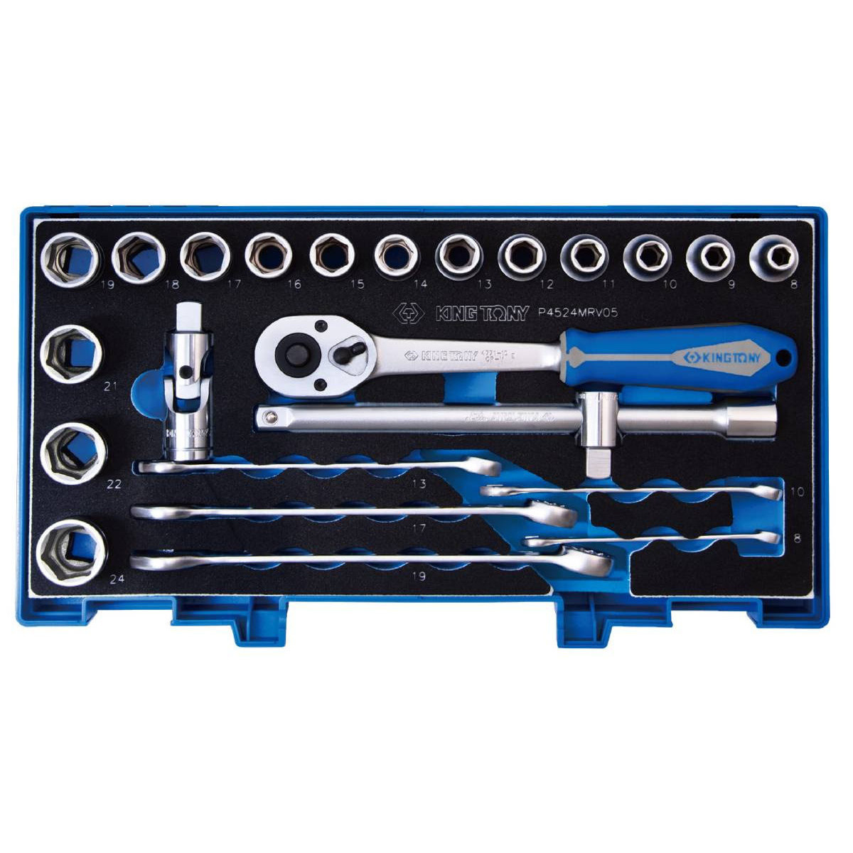 Sada hlavic s ráčnou a příslušenstvím King Tony 1/2 CrV 6 hran 4524MRV05