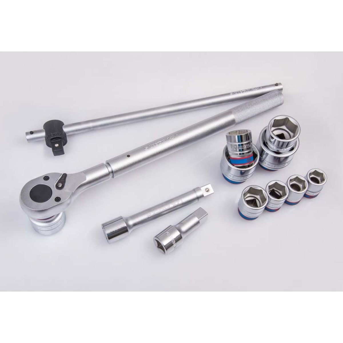 14 dílná sada nástrčných 3/4" šestihranných hlavic s příslušenstvím z CrV oceli v nejvyšší kvalitě v pllastovém kufru