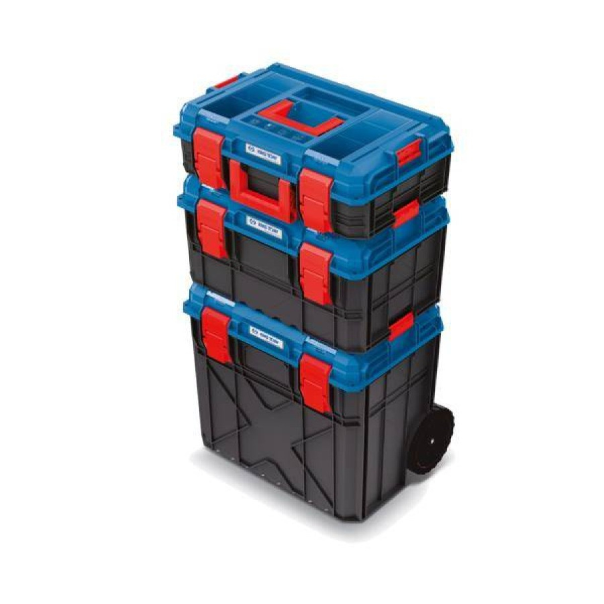 - mobilní box má zabudovaná kolečka a nastavitelnou rukojeť vozíku pro snadný pohyb a přepravu nářadí