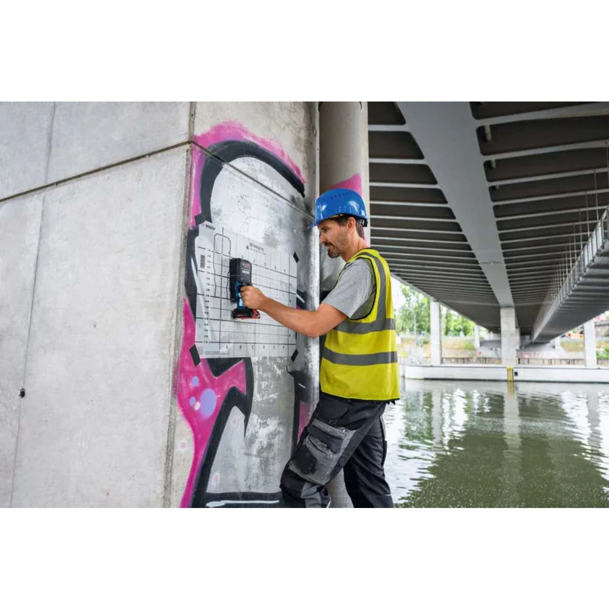 - hloubky detekce se liší podle měřeného materiálu (přesnost ± 5,0 mm), v tuhém betoně 200 mm, v raném stadiu betonu 60 mm, v ostatních typech zdiva 80 mm a v dřevěných nosných konstrukcích 38 mm